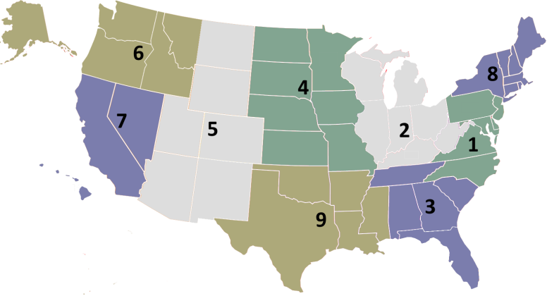 Click a region on the map below to visit that region's official website. Region 1 Region 2 Region 4 Region 5 Region 6 Region 6 (Alaska) Region 7 Region 7 (Hawaii) Region 8 Region 9